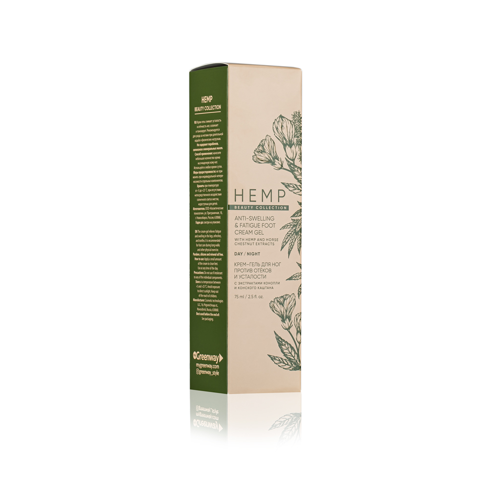 Zloženie/Ingredients (INCI): Aqua, Caprylic / Capric Triglyceride, Isopropyl Palmitate, Cannabis Sativa Seed Extract, Aesculus Hippocastanum (Horse Chestnut) Seed Extract, Glycerin, Cetearyl Alcohol, Glyceryl Stearate, Sodium Hyaluronate, Panthenol, Sodium Benzoate, Potassium Sorbate, Xanthan Gum, Tocopherol, Menthol, Fragrance.